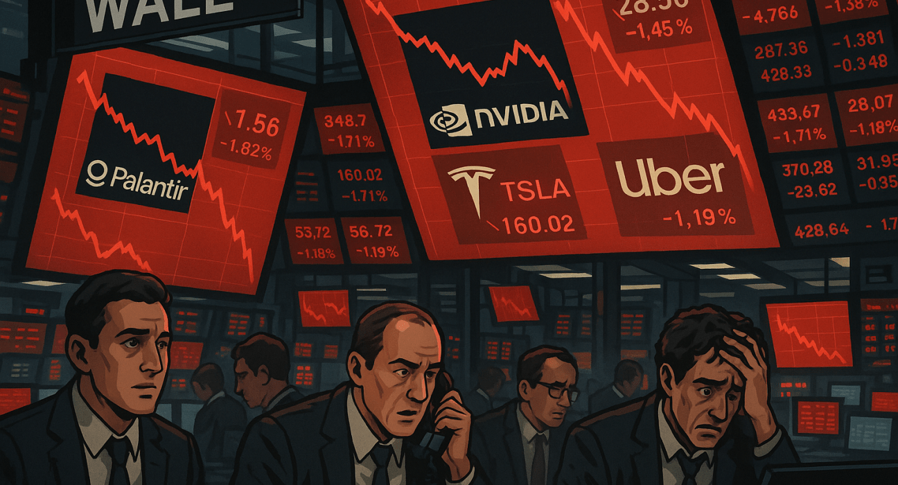 US stocks declined on Tuesday, led by losses in artificial intelligence-linked names such as Palantir, as investors reassessed stretched valuations following a year-long rally in technology shares. The S&P 500 fell 1.2% shortly after the market opened, while the Nasdaq Composite declined 1.7%. The Dow Jones Industrial Average dropped 430 points, or 0.9%. The declines